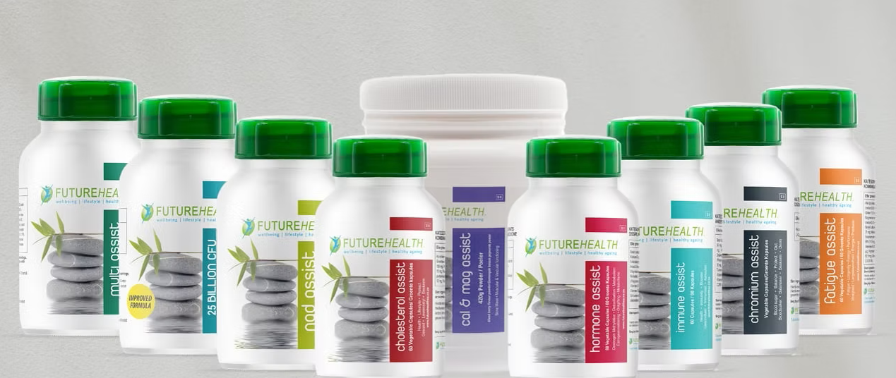 Energy & Metabolism: The range includes Future Health Fatigue Assist, which contains antioxidants and vitamins like NAD to enhance energy, and Future Health Chromium Assist for blood sugar metabolism.